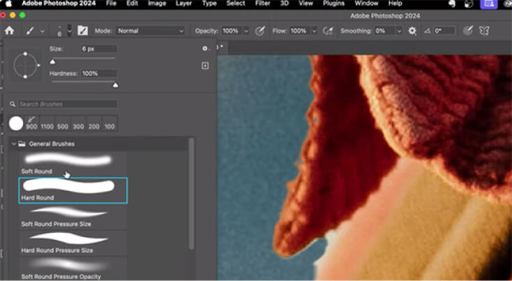 - How it works: The Brush Tool lets you paint on your image canvas with various brush sizes, shapes, and settings. You can customise the colour, opacity, and blending mode.